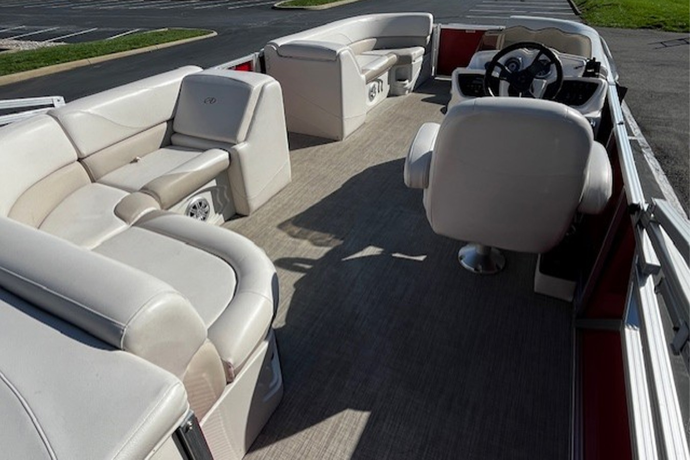The 2018 Avalon 2285 LSZ Cruise Rear Bench pontoon boat offers a blend of comfort and performance, making it a popular choice among boating enthusiasts. Its spacious layout features a high-back reclining Admiral's chair and brushed pewter seat cladding for a luxurious seating experience. A built-in livewell under the bench enhances its appeal for fishing, while electric power assist steering and an RGB lighting package provide a smooth and enjoyable ride on the water.