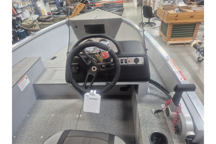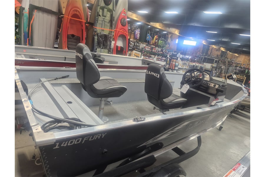 The affordable Lund 1400 Fury SS (side console) aluminum fishing boat features a convenient side console dual cockpit-side rod storage aerated livewell and a large bow casting deck. The 1400 Fury SS provides the ultimate convenience and power in a smaller sized 14 feet 9 inch side console fishing boat. The Fury is built with Lunds traditional quality and fishability.